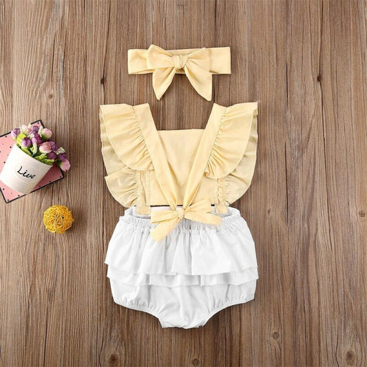 Linen Top & Bloomer Ruffle Set - White top pink bloomer